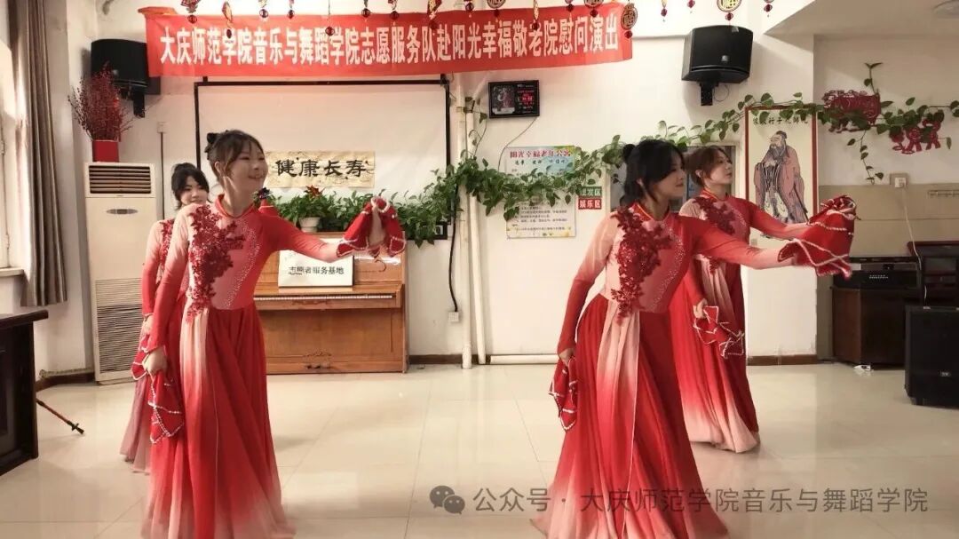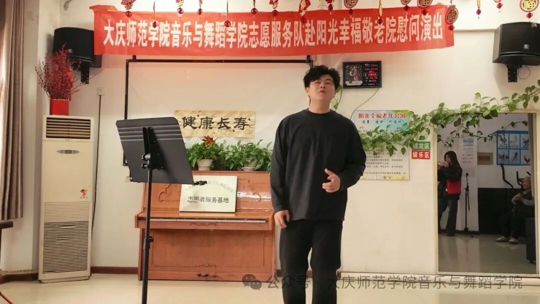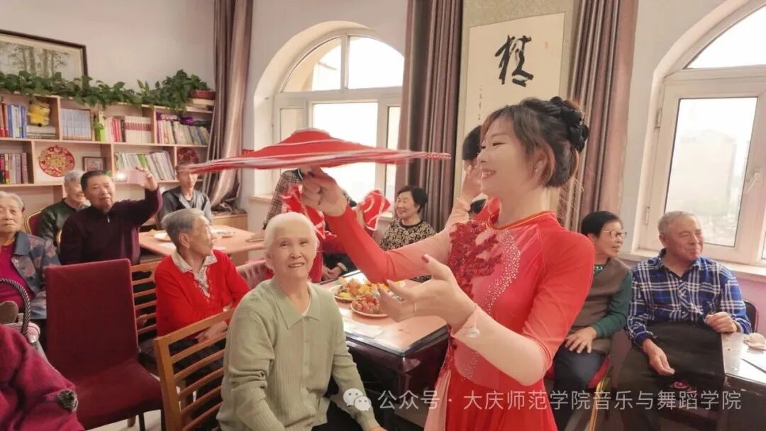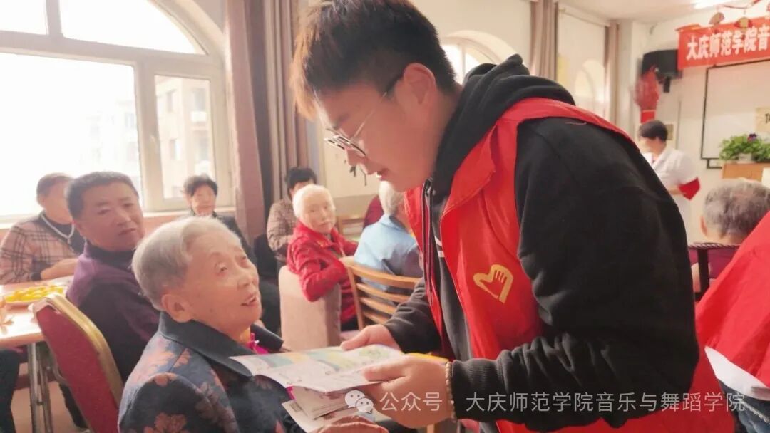 在热烈的掌声中,这场专为重阳节精心筹备的敬老慰问演出正式拉开帷幕。群舞《爷爷奶奶和我们》以活泼灵动的舞姿,生动展现出年轻人与老年人之间的深厚情谊。声乐表演环节,志愿者以悠扬婉转的歌声演绎经典曲目,细腻唱腔中满含对岁月的敬意,深深打动了每一位老人。乐器演奏部分更显精彩纷呈,竹笛之声清脆悠扬,古筝之音韵味十足,为老人们呈现了一场无与伦比的听觉盛宴。演出尾声,志愿者们耐心教老人们唱歌、学习转手绢等简单舞蹈动作。