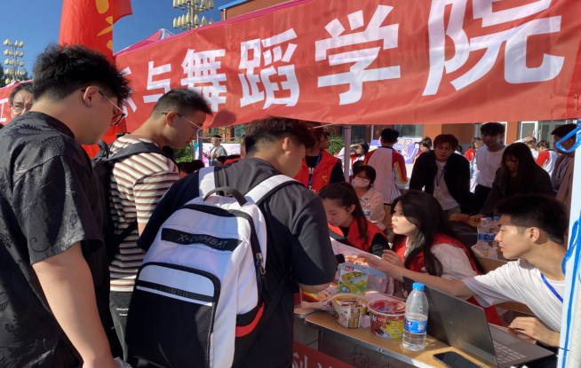 2023级辅导员王鑫带领员工会干部和志愿者们精心筹备,服务在迎新工作第一线,认真细致地为新同学做好各项服务工作。